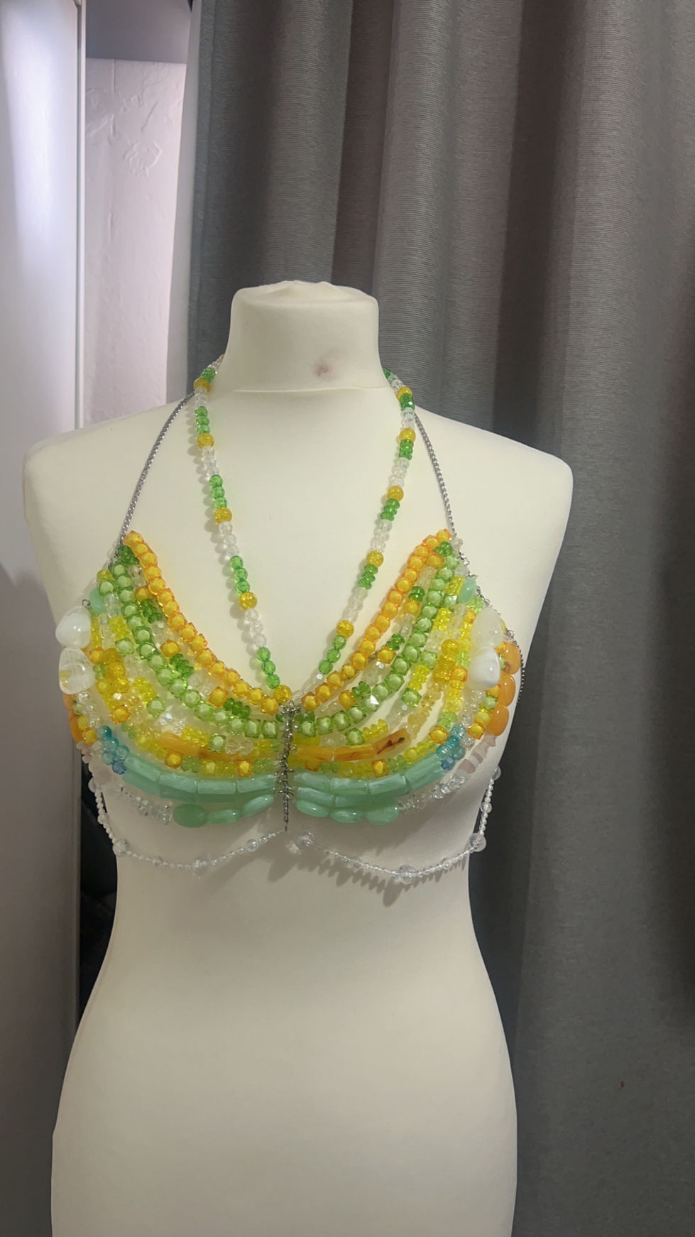 A collection of vibrant and stylish fashion photography, featuring colorful beaded tops, stylish outfits, and urban settings.